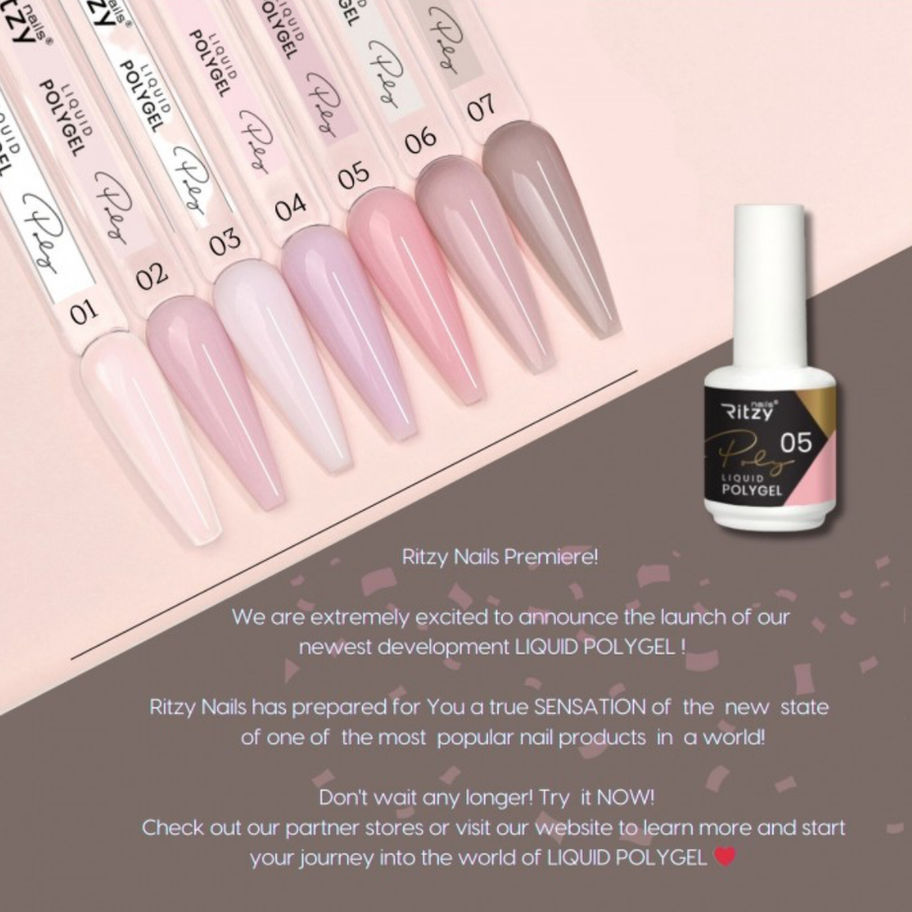 Ritzy Nails LIQUID POLYGEL comes in 13 beautuful shades and in Clear.